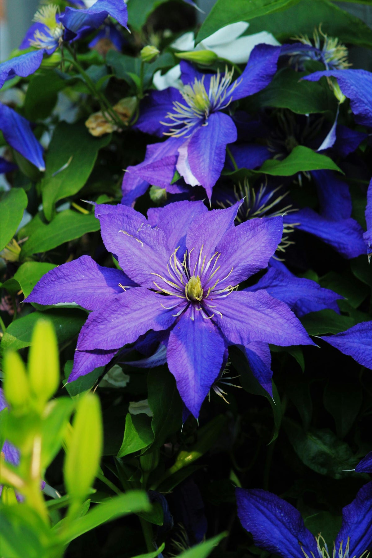 This variety produces large, star-shaped blooms in deep violet to purple-blue shades, often accented by a slightly lighter central stripe. Flowering typically occurs in two waves, with the first display in late spring to early summer and a second flush in late summer.
