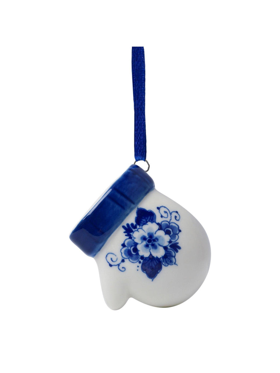 • Dizajn: Ovaj keramički ukras oblikovan je poput rukavice, ukrašen nježnim Delft plavim cvjetnim uzorcima, hvatajući toplinu i ljepotu blagdanske sezone.