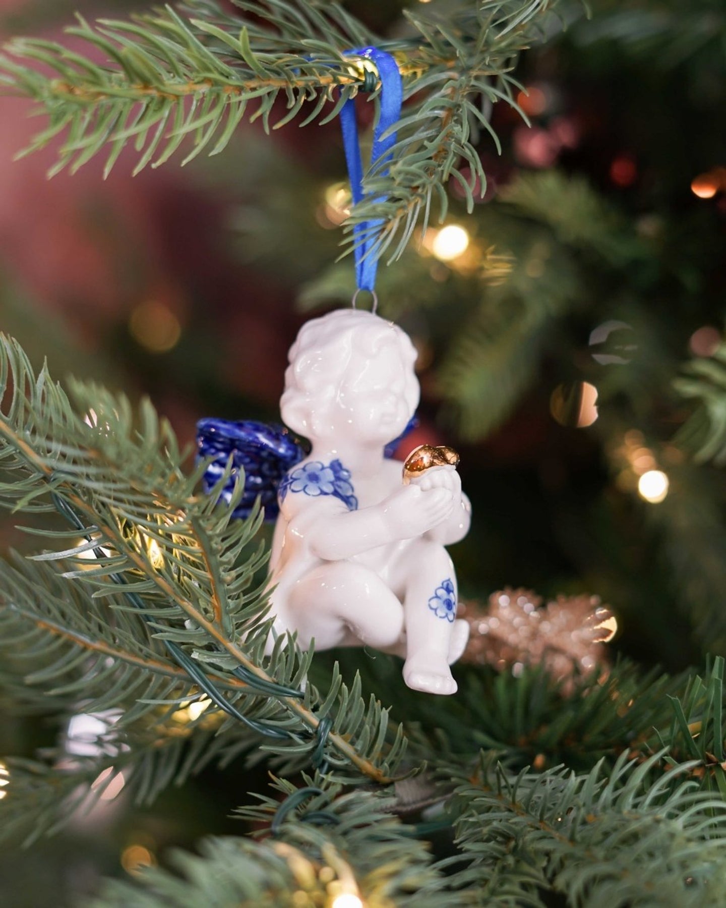 • Krila ukrašena u Delft plavom stilu i drže zlatno srce