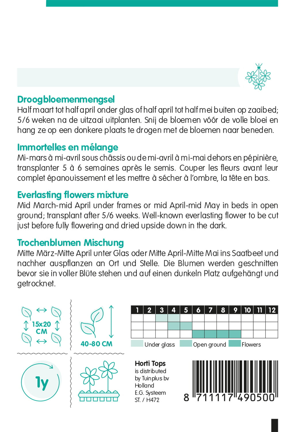 • Well-known everlasting flower to be cut just before fully flowering and dried upside down in the dark