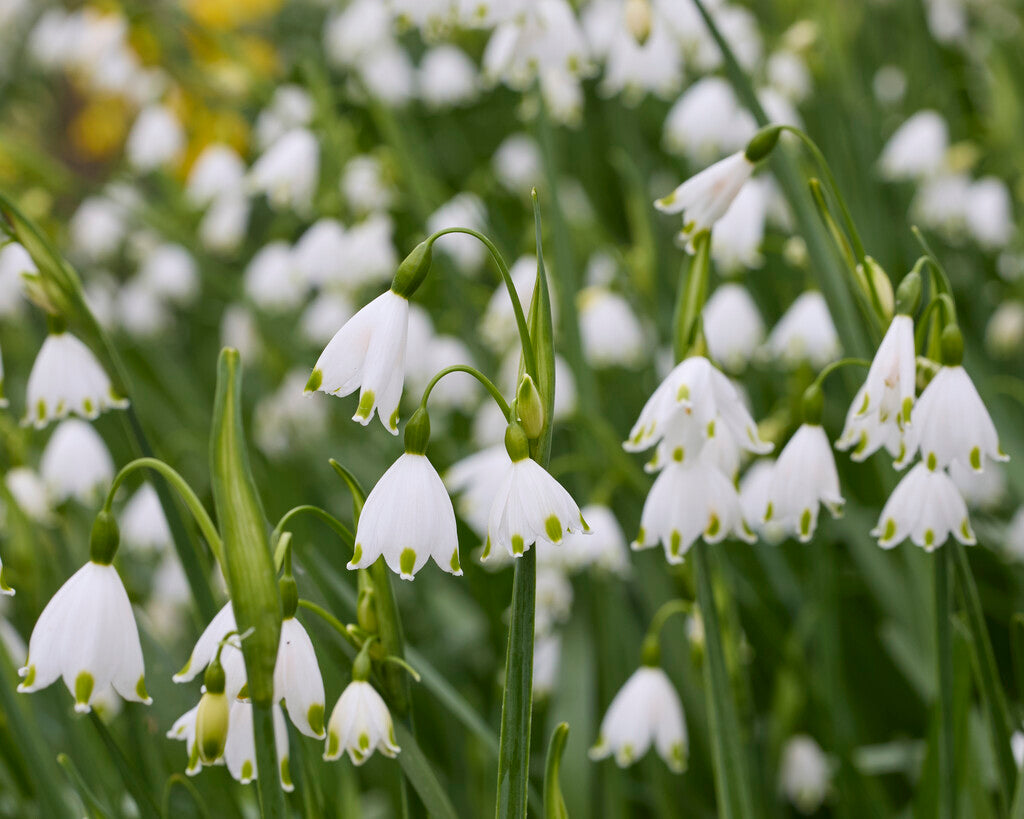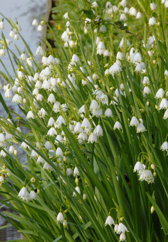 • Large, bell-shaped white flowers with green tips, blooming in generous clusters