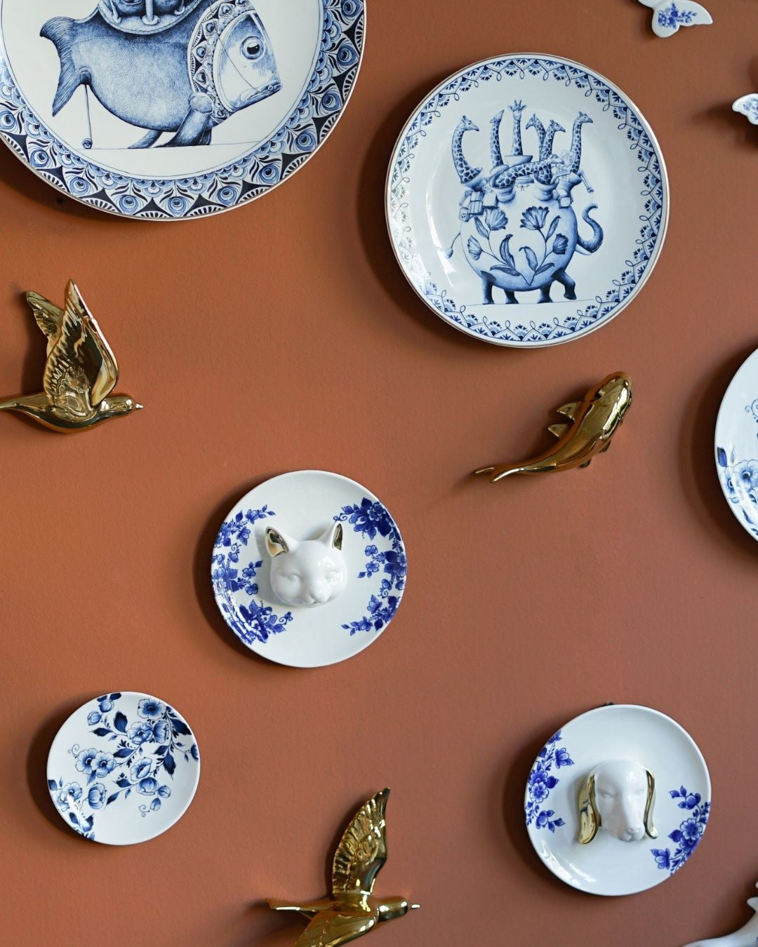 • Three-dimensional decorative wall plate featuring a cat head in relief