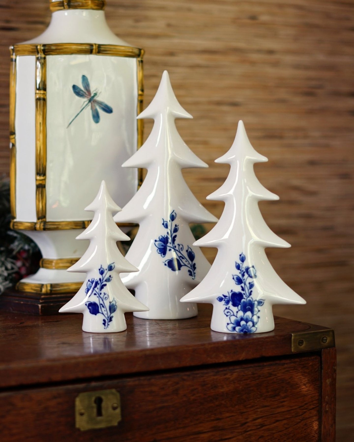 • Figurine of a Christmas tree with elegant branches and subtle Delft blue decoration