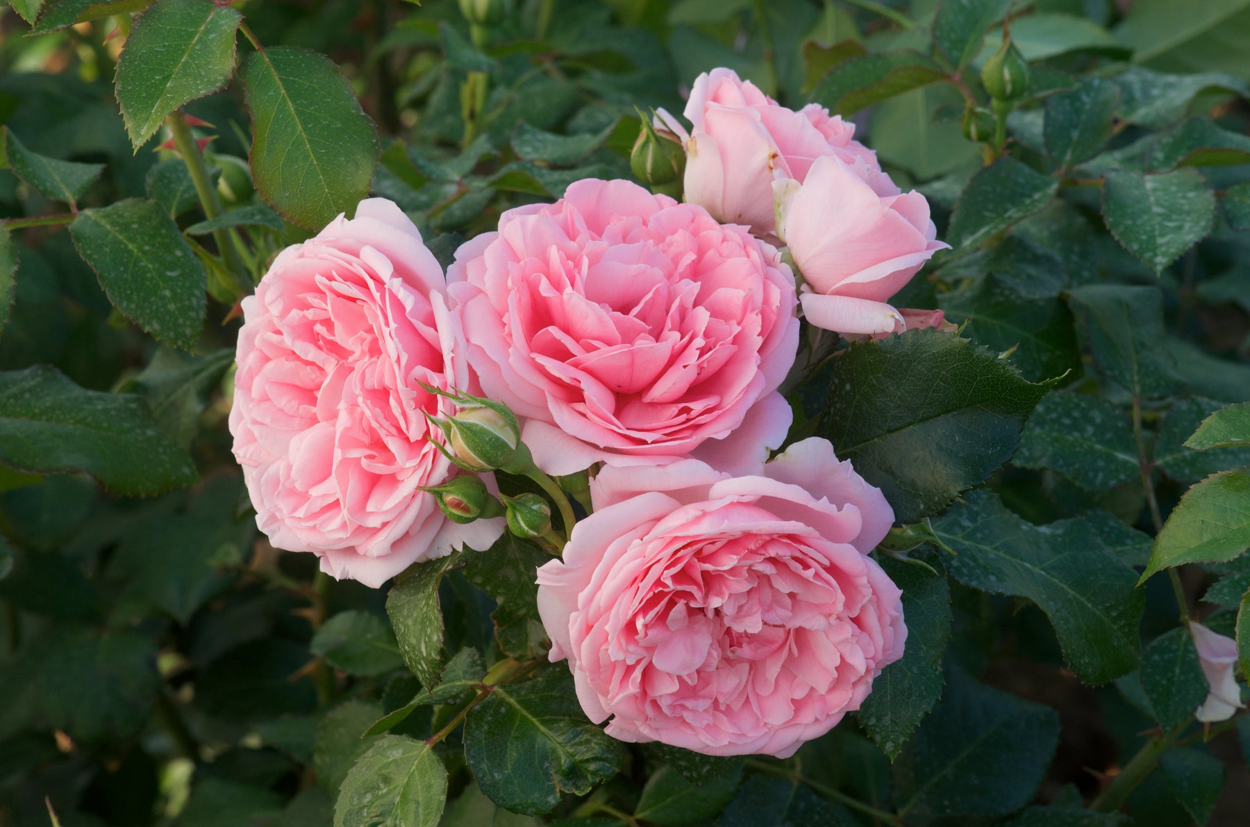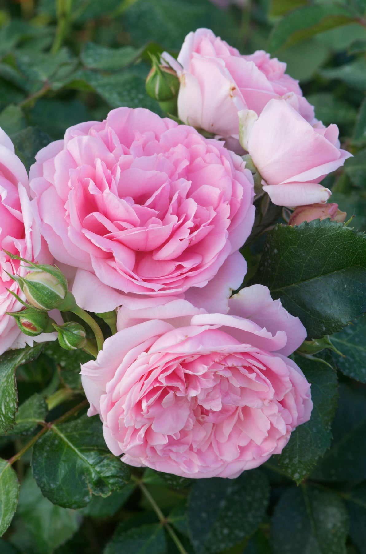 Its beautiful double blooms open in a luminous light pink, glowing softly against dark green deciduous foliage. Flowering is repeat blooming and continues generously from May until the first frosts, bringing lasting charm to borders, beds, or standalone planting.