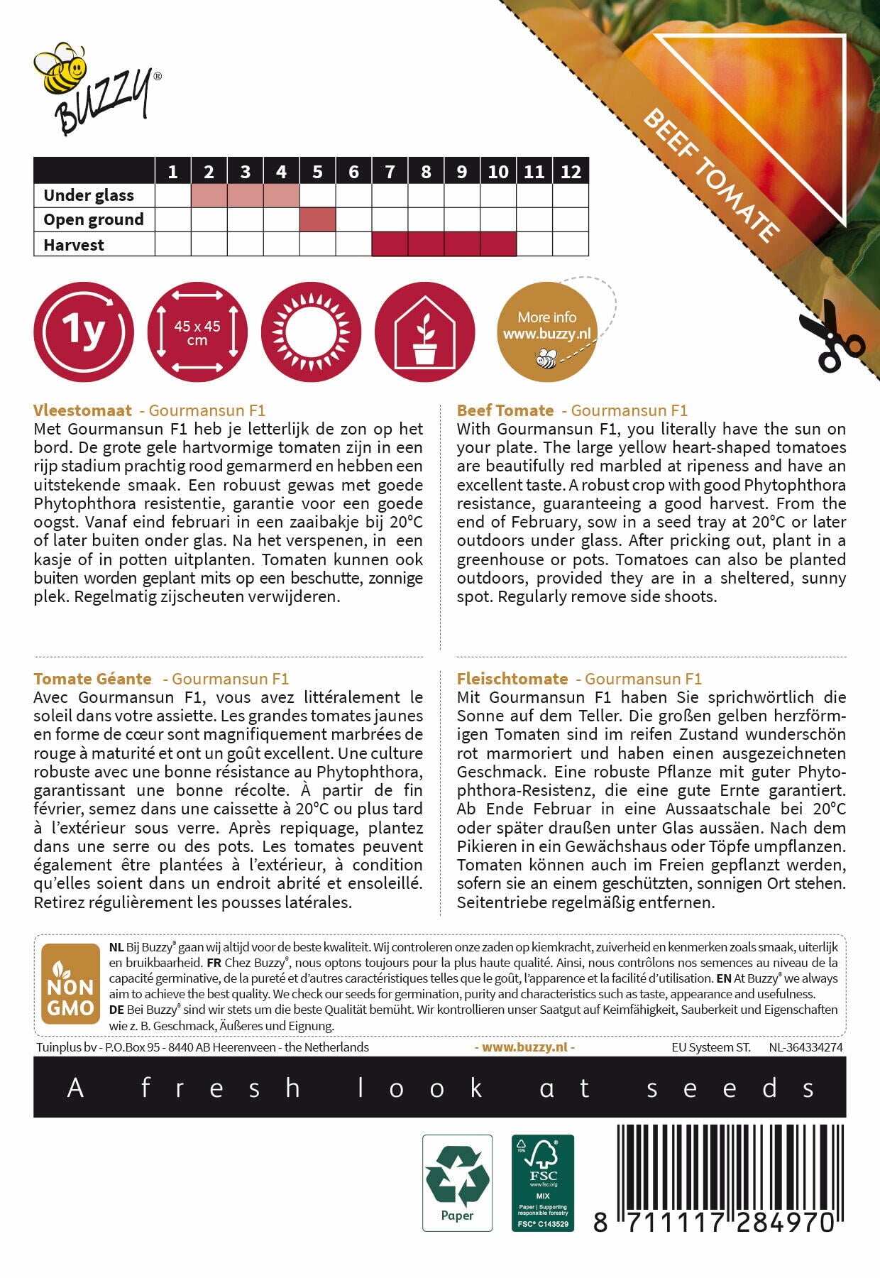 Origin: A modern F1 hybrid beefsteak tomato developed from the Gourmandia lineage, recognised for its exceptional flavour and striking fruit appearance
