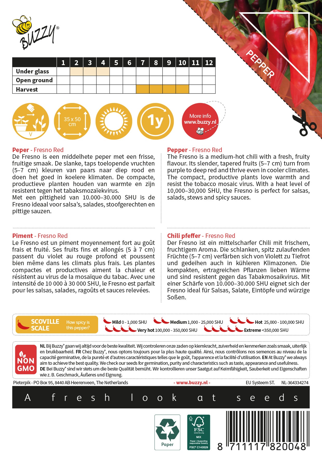 Zanimljivost: Fresno paprike često se uspoređuju s jalapeñom, ali kako dozrijevaju u crveno postaju voćnije i ljuće. SHU: 2.500 – 10.000